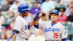 [OSEN=덴버, 민경훈 기자] 4일 (이하 한국시간) 미국 콜로라도주 덴버 쿠어스 필드에서 열린 2013 메이저리그 콜로라도 로키스와 LA 다저스의 경기, 2회초 2사 주자 2,3루 다저스 크로포드의 좌전 2타점 적시타때 홈을 밟은 슈마커가