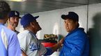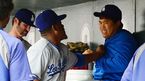 [OSEN=덴버, 민경훈 기자] 4일 (이하 한국시간) 미국 콜로라도주 덴버 쿠어스 필드에서 열린 2013 메이저리그 콜로라도 로키스와 LA 다저스의 경기, 류현진과 힐만 코치와 장난을 치고 있다. 다저스는 LA 다저스는 어제(3일) 열린 콜