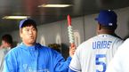 [OSEN=덴버, 민경훈 기자] 4일 (이하 한국시간) 미국 콜로라도주 덴버 쿠어스 필드에서 열린 2013 메이저리그 콜로라도 로키스와 LA 다저스의 경기, 류현진과 유리베가 덕아웃에서 장난을 치고 있다. 다저스는 LA 다저스는 어제(3일)