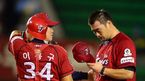 [OSEN=잠실, 지형준 기자] 5일 오후 서울 잠실야구장에서 열린 '2013 한국야쿠르트 세븐 프로야구' 두산 베어스와 KIA 타이거즈의 경기, 3회말 1사 2,3루에서 두산 오재일이 내야땅볼을 날리고 타구를 바라보고 있다. KIA 이범호 볼을