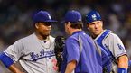 [OSEN=덴버, 민경훈 기자] 5일 (이하 한국시간) 미국 콜로라도주 덴버 쿠어스 필드에서 열린 2013 메이저리그 콜로라도 로키스와 LA 다저스의 경기, 8회초 2사 1, 3루 대타로 나선 다저스의 야시엘 푸이그가 체크스윙 삼진을 당한 후