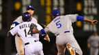 [OSEN=덴버, 민경훈 기자] 5일 (이하 한국시간) 미국 콜로라도주 덴버 쿠어스 필드에서 열린 2013 메이저리그 콜로라도 로키스와 LA 다저스의 경기, 3회말 무사 주자 1루 콜로라도 툴로비츠키의 땅볼때 1루 주자 러틀리지가 3루로 진