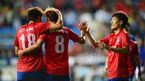 [OSEN=인천, 지형준 기자] 6일 오후 인천 축구전용경기장에서 열린 한국과 아이티의 친선 경기, 후반 한국 손흥민이 선제골에 이어 팀의 네번째 골을 성공시키고 구자철, 이청용과 기뻐하고 있다. 홍명보 감독이 지휘하는 축구 대