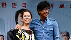 [OSEN=정송이 기자] 9일 오후 서울 압구정CGV에서 진행된 영화 '히어로' 제작보고회에서 황인영과 박철민이 미소짓고 있다. '히어로'는 시청률 부진으로 '썬더맨'이 종영한 뒤 식음전폐하고 슬퍼하는 '썬더맨'의 광팬 규완(정윤석