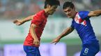 [OSEN=전주월드컵경기장, 지형준 기자] 홍명보 감독이 이끄는 국가대표 축구대표팀이 10일 오후 전주월드컵경기장에서 크로아티아와 친선경기를 벌였다. 전반 한국 김보경이 크로아티아 페리시치와 몸싸움 도중 얼굴을 치며 파
