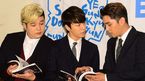 [OSEN=지형준 기자] '슈퍼주니어의 익스피리언스 코리아 NEWS+Seoul' 출간 기념 기자간담회가 11일 오후 서울 영등포 타임스퀘어의 한 카페에서 열렸다. 신동, 동해, 강인이 책을 살펴보고 있다. '슈퍼주니어의 익스피리언스 코리아 N