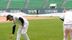 [OSEN=잠실, 이대선 기자] 11일 오후 서울 잠실야구장에서 열린 2013 한국야쿠르트 세븐프로야구 LG 트윈스와 두산 베어스의 경기, 경기에 앞서 두산 니퍼트가 훈련 중 미소를 짓고 있다. LG와 두산은 각각 신재웅과 유희관을 선발