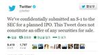 [OSEN=이슈팀] 트위터가 기업공개를 신청했다. 13일 트위터사는 공식 트위터를 통해 기업공개를 위한 서류를 미국 증권거래위원회에 냈다고 말했다. 업계에 따르면 트위터사의 가치는 100억 달러에 육박하는 것으로 알려졌다. 기
