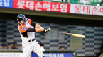 [OSEN=부산, 이대선 기자] 15일 오후 부산 사직야구장에서 열린 롯데 자이언츠와 두산 베어스의 경기, 5회말 1사 2,3루에서 롯데 강민호가 우전 적시타를 치고 있다. 롯데 자이언츠와 두산 베어스는 외국인 좌완 에이스 셰인 유먼과