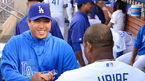 [OSEN=로스앤젤레스, 민경훈 기자] 15일 (이하 한국시간) 미국 캘리포니아주 로스앤젤레스 다저스타디움에서 열린 2013 메이저리그 LA 다저스와 샌프란시스코 자이언츠의 경기,경기 전 다저스 덕아웃에서 유리베가 음악이 흐르자