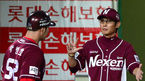 [OSEN=사직, 박준형 기자] 17일 오후 부산 사직구장에서 열린 '2013 한국야쿠르트 세븐 프로야구' 롯데 자이언츠와 넥센 히어로즈의 경기, 3회초 무사 1,2루 넥센 박병호가 3점 홈런을 날리고 염경엽 감독의 축하를 받고 있다. 이날