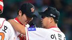 [OSEN=인천, 최규한 기자] 17일 오후 인천 문학구장에서 '2013 한국야쿠르트 세븐 프로야구' SK 와이번스 대 LG 트윈스의 경기가 열렸다. 7회초 LG 공격 1사 2루 상황 SK 선발 백인식이 이만수 감독의 격려를 받으며 마운드를 내려가고