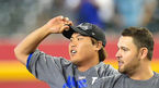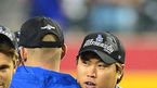 [OSEN=이슈팀] LA 다저스 류현진이 지구 우승 기념 파티에서 기쁨을 감추지 못했다. 류현진은 20일(한국시간) 자신의 트위터에 "감사합니다!!!!"라는 짧은 글과 함께 사진 한 장을 올렸다. 사진 속 류현진은 통역을 맡고 있는 마틴