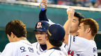 [OSEN=잠실, 이대선 기자] 21일 오후 서울 잠실야구장에서 열린 2013 한국야쿠르트 세븐프로야구 두산 베어스와 KIA 타이거즈의 경기, 4회말 무사에서 두산 이원석이 중월 솔로 홈런을 치고 홈에서 김민재 코치와 하이파이브를 하고