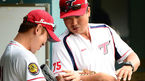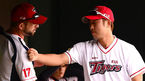 [OSEN=잠실, 이대선 기자] 21일 오후 서울 잠실야구장에서 열린 2013 한국야쿠르트 세븐프로야구 두산 베어스와 KIA 타이거즈의 경기, 경기에 앞서 KIA 윤석민이 빌로우와 이야기를 나누고 있다. KIA는 좌완 양현종(25)을 선발로 내세