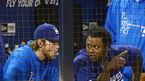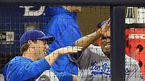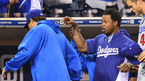 [OSEN=샌디에이고, 민경훈 기자] 21일 (이하 한국시간) 미국 캘리포니아 샌디에이고 펫코 파크에서 열린 2013 메이저리그 샌디에이고 파드리스와 LA 다저스 경기, 덕아웃에서 푸이그가 헨리 라미레스를 조정해서 류현진에게 장난