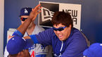 [OSEN=샌디에이고, 민경훈 기자] 23일 (이하 한국시간) 미국 캘리포니아 샌디에이고 펫코 파크에서 열린 2013 메이저리그 샌디에이고 파드리스와 LA 다저스 경기, 경기 전 다저스 덕아웃에서 류현진이 덕아웃에서 후안 유리베와 하
