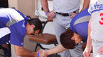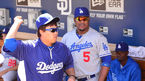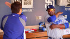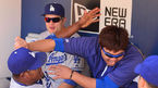 [OSEN=샌디에이고, 민경훈 기자] 23일 (이하 한국시간) 미국 캘리포니아 샌디에이고 펫코 파크에서 열린 2013 메이저리그 샌디에이고 파드리스와 LA 다저스 경기, 경기 전 다저스 덕아웃에서 류현진과 후안 유리베가 장난을 치고 있