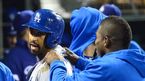 [OSEN=샌프란시스코, 민경훈 기자] 25일 (이하 한국시간) 미국 캘리포니아 샌프란시스코 AT&T 파크에서 열린 2013 메이저리그 샌프란시스코 자이언츠와 LA 다저스 경기 6회초 맷 켐프가 솔로홈런을 치고 동료들의 환영을 받고 있