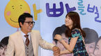 [OSEN=광주, 정송이 기자] 27일 오전 전라남도 광주 CGI센터에서 진행된 영화 '아빠를 빌려드립니다' (김덕수 감독) 제작발표회에서 조재윤과 민아가 포토월을 빠져나가고 있다. 김상경, 문정희, 채정안, 조재윤, 민아가 출연하는 '
