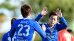 [OSEN=송도, 곽영래 기자] 3일 오후 인천광역시 송도 종합 스포츠 파크 (LNG 스포츠센터)에서 '2013 아시아 유소년 축구축제' 연예인 축구팀 FC MEN VS 국가대표 출신 선수 친선 경기가 열렸다. 윤두준이 서지석과 하이파이브를 하고 있