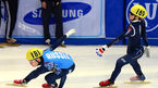 [OSEN=목동, 곽영래 기자] 4일 오후 서울 목동 아이스링크에서 '2013-14 삼성 ISU 쇼트트랙 월드컵' 남자부 1000m 예선경기가 열렸다. (왼쪽) 안현수(빅토르 안)와 신다은이 충돌하고 있다. 이로인해 신다운은 임페딩 실격 처리되었다.