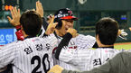 [OSEN=잠실, 백승철 기자] 5일 오후 서울 잠실구장에서 열린 '2013 한국야쿠르트 세븐 프로야구' LG 트윈스와 두산 베어스의 경기 6회말 2사 3루 김용의의 번트에 득점에 성공한 이병규가 환호하고 있다. 승률왕 타이틀이 사실상 확