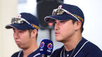 [OSEN=목동, 김영민 기자] 7일 오후 서울 목동구장에서 진행된 '2013 한국야쿠르트 세븐 프로야구 준플레이오프 미디어데이'에서 두산 유희관이 넥센 박병호에는 크게 신경을 쓰지않는다는 출사표에 홍성흔이 얼굴을 감싸고있다.