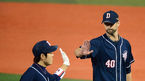 [OSEN=목동, 곽영래 기자] 8일 오후 서울 목동구장에서 열린 '2013 한국야쿠르트 세븐 프로야구' 준플레이오프 1차전 넥센 히어로즈(3위)와 두산 베어즈(4위)의 경기, 3회말 2사 만루 두산 니퍼트가 이닝을 마치고 허경민과 하이파이