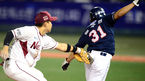 [OSEN=목동, 곽영래 기자] 8일 오후 서울 목동구장에서 열린 '2013 한국야쿠르트 세븐 프로야구' 준플레이오프 1차전 넥센 히어로즈(3위)와 두산 베어즈(4위)의 경기, 2회초 1사 1,3루 넥센 김민성이 김재호의 번트 타구때 홈으로 쇄