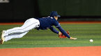 [OSEN=목동, 곽영래 기자] 8일 오후 서울 목동구장에서 열린 '2013 한국야쿠르트 세븐 프로야구' 준플레이오프 1차전 넥센 히어로즈(3위)와 두산 베어즈(4위)의 경기, 3회말 무사 두산 허경민이 넥센 허도환의 타구를 잡기위해 슬라