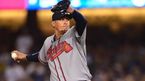 [OSEN=로스앤젤레스, 민경훈 기자] 8일 (이하 한국시간) 미국 캘리포니아주 로스앤젤레스 다저스타디움에서 2013 메이저리그 LA 다저스와 애틀랜타 브레이브스의 디비전시리즈 4차전 경기 애틀랜타 선발 투수 가르시아가 힘차게