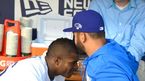 [OSEN=로스앤젤레스, 민경훈 기자] 8일 (이하 한국시간) 미국 캘리포니아주 로스앤젤레스 다저스타디움에서 2013 메이저리그 LA 다저스와 애틀랜타 브레이브스의 디비전시리즈 4차전 경기에 나서는 푸이그를 맷 켐프가 격려하고