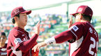 [OSEN=잠실, 곽영래 기자] 12일 오후 서울 잠실구장에서 열리는 '2013 한국야쿠르트 세븐 프로야구' 준플레이오프 4차전 두산 베어스와 넥센 히어로즈의 경기 2회말 넥센 문성현이 이닝을 무실점으로 막아낸 뒤 동료들에게 축하받