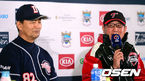 [OSEN=잠실, 곽영래 기자] 15일 오후 서울 잠실구장에서 진행된 '2013 한국야쿠르트 세븐 프로야구 플레이오프 미디어데이'에서 LG 김기태 감독과 두산 유희관이 악수를 하고 있다. 이날 미디어데이에는 LG 김기태 감독과 두산 김진