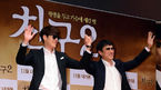 [OSEN=백승철 기자] 17일 오전 서울 자양동 롯데시네마 건대입구에서 열린 영화 '친구2' 제작보고회에서 김우빈, 유오성이 포토타임을 갖고 있다. 곽경택 감독이 다시 한 번 연출을 맡고, 유오성, 주진모, 김우빈이 출연해 화제를