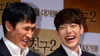 [OSEN=백승철 기자] 17일 오전 서울 자양동 롯데시네마 건대입구에서 열린 영화 '친구2' 제작보고회에서 김우빈과 유오성이 웃음을 터트리고 있다. 곽경택 감독이 다시 한 번 연출을 맡고, 유오성, 주진모, 김우빈이 출연해 화제