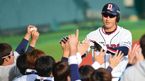 [OSEN=잠실, 지형준 기자] 19일 오후 서울 잠실야구장에서 열린 '2013 한국야쿠르트 세븐 프로야구' 플레이오프 3차전 두산 베어스 대 LG 트윈스의 경기, 4회말 1사 1루에서 두산 임재철이 정수빈의 1타점 적시 3루타에 홈을 밟고 더