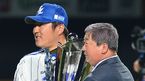 [OSEN=대구, 최규한 기자] 24일 오후 대구구장에서 열린 '2013 한국야쿠르트 세븐 프로야구' 한국시리즈 삼성 라이온즈와 두산 베어스의 1차전, 경기 시작에 앞서 페넌트레이스 우승을 거머쥔 삼성 주장 최형우가 구본능 KBO총재로