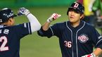[OSEN=대구 ,백승철 기자] 25일 오후 대구구장에서 열린 '2013 한국야쿠르트 세븐 프로야구' 한국시리즈 2차전 삼성 라이온즈와 두산 베어스의 경기 13회초 1사 오재일이 솔로포를 치고 김진욱 감독과 하이파이브를 하고 있다. 이날
