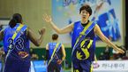 [OSEN=춘천, 최규한 기자] 10일 오후 춘천 호반체육관에서 '우리은행 2013-2014 여자프로농구' 개막전 우리은행 한새와 신한은행 에스버드의 경기가 열렸다. 3쿼터, 신한은행 하은주 팀의 역전에 환호하고 있다. 정규리그는 팀 당 35