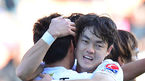 [OSEN=수원, 민경훈 기자] 10일 오후 수원월드컵경기장에서 현대오일뱅크 K리그 클래식 2013 수원 삼성과 포항 스틸러스의 경기, 전반 포항 이명주가 동점골을 성공시킨 후 신광훈과 포옹을 하고 있다. 포항은 수원과 올 시즌 세 차