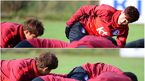 [OSEN=파주, 지형준 기자] 스위스, 러시아와의 A매치 평가전을 앞두고 홍명보 감독이 이끄는 축구 대표팀이 13일 오후 파주 NFC에서 훈련을 가졌다. 홍정호가 스트레칭 도중손흥민의 엉덩이를 만지며 장난을 치고 있다. 스위스는