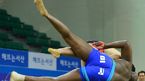 [OSEN=서산, 최규한 기자] 14일 오전 충청남도 서산시 농어민문화체육센터에서 'IBK기업은행 2013 천하장사 씨름대축제'가 열렸다. 천하장사결정전에 참가한 커티스 존슨(미국)과 장수남(인천일반)의 경기, 존슨이 승리를 거둔 뒤