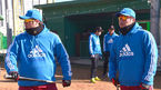 [OSEN=부산,박준형 기자] 22일 오후 부산 경성대학교 운동장에서 진행된 '아디다스와 함께하는 이대호 유소년·사회인 야구캠프', 훈련에 앞서 롯데 최준석과 강민호가 이야기를 나누고 있다 이틀간 진행되는 이번 행사는 22일엔