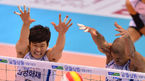 [OSEN=대전, 박준형 기자] 24일 오후 대전 충무실내체육관에서 열린 '2013-2014 프로배구 V리그' 남자부 삼성화재와 현대캐피탈의 경기, 1세트 현대캐피탈 여오현과 아가메즈가 환호하고 있다. 각각 3연승(삼성화재), 2연승(현대캐피