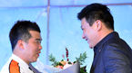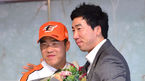 [OSEN=박준형 기자] 27일 오후 서울 플라자 호텔 다이아몬드홀에서 진행된 프로야구 선수 정근우와 이용규의 입단식에서 한화 정근우가 김태균에게 꽃다발 선물을 받고 있다. 정근우와 이용규는 지난 17일 한화와 각각 4년 총액 7