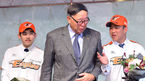 [OSEN=박준형 기자] 27일 오후 서울 플라자 호텔 다이아몬드홀에서 진행된 프로야구 선수 정근우와 이용규의 입단식 포토타임에 급하게 들어가려던 한화 김응룡 감독이 정근우에게 제지를 당하고 있다. 정근우와 이용규는 지난