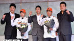 [OSEN=박준형 기자] 27일 오후 서울 플라자 호텔 다이아몬드홀에서 진행된 프로야구 선수 정근우와 이용규의 입단식에서 한화 정근우, 이용규가 팀동료 최진행, 고동진, 김태균과 포즈를 취하고 있다. 정근우와 이용규는 지난 17