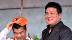 [OSEN=박준형 기자] 27일 오후 서울 플라자 호텔 다이아몬드홀에서 진행된 프로야구 선수 정근우와 이용규의 입단식에서 한화 정근우가 김태균과 포즈를 취하고 있다. 정근우와 이용규는 지난 17일 한화와 각각 4년 총액 70억원, 67